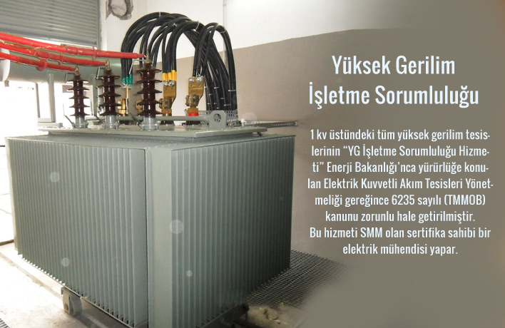 Yüksek gerilim işletme sorumluluğu, 6235 sayılı Türk Mühendis Ve Mimar Odaları Birliği Kanunu hükümlerine dayanılarak yönetmelik ile yayınlanmıştır. İşletme sorumluluğu, işletmelerde tam gün ve tam yıl çalışan mühendisler tarafından üstlenilir. İşletmede mühendis yok ise EMO tarafından SMM belgesi ve işletme sorumluluğu yetkilendirme belgesine sahip olan mühendisler tarafından üstlenilebilir.